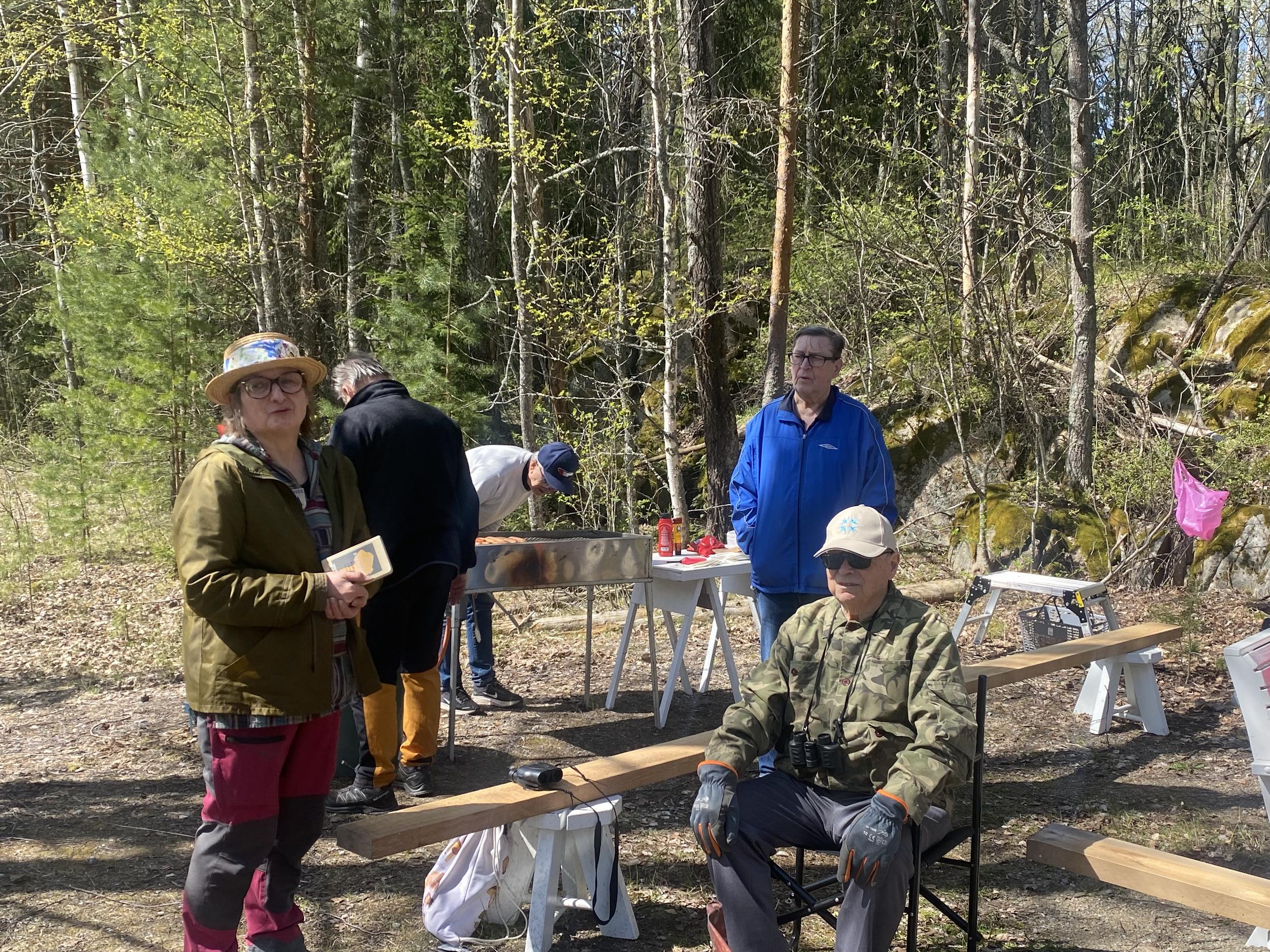 Ohjelmassa oli Tuulin vetämä alkujumppa joogaillen. Kävelyä pitemmän tai lyhyemmän reitin mukaan, ulkopunttisalilla sai voimailla ja venytellä, laavulla makkaran paistoa ja Tuulan lauluhetki. Isot kiitokset Hollolan liikkuvalle porukalle vierailusta Pentti ja Seija Koskisen johdolla. Tuulille ja Tapsalle myös kiitos hyvistä järjestelyistä, kaikki sujui hienosti ja mikä kruunasi kaiken; ihan mahtava sää! Tuli kyllä hyvä mieli kaikille. Ja nyt sitten odotetaan koska päästään vastavierailulle Hollolaan. Paikalla 32 senioria Hollolasta ja Asikkalasta.