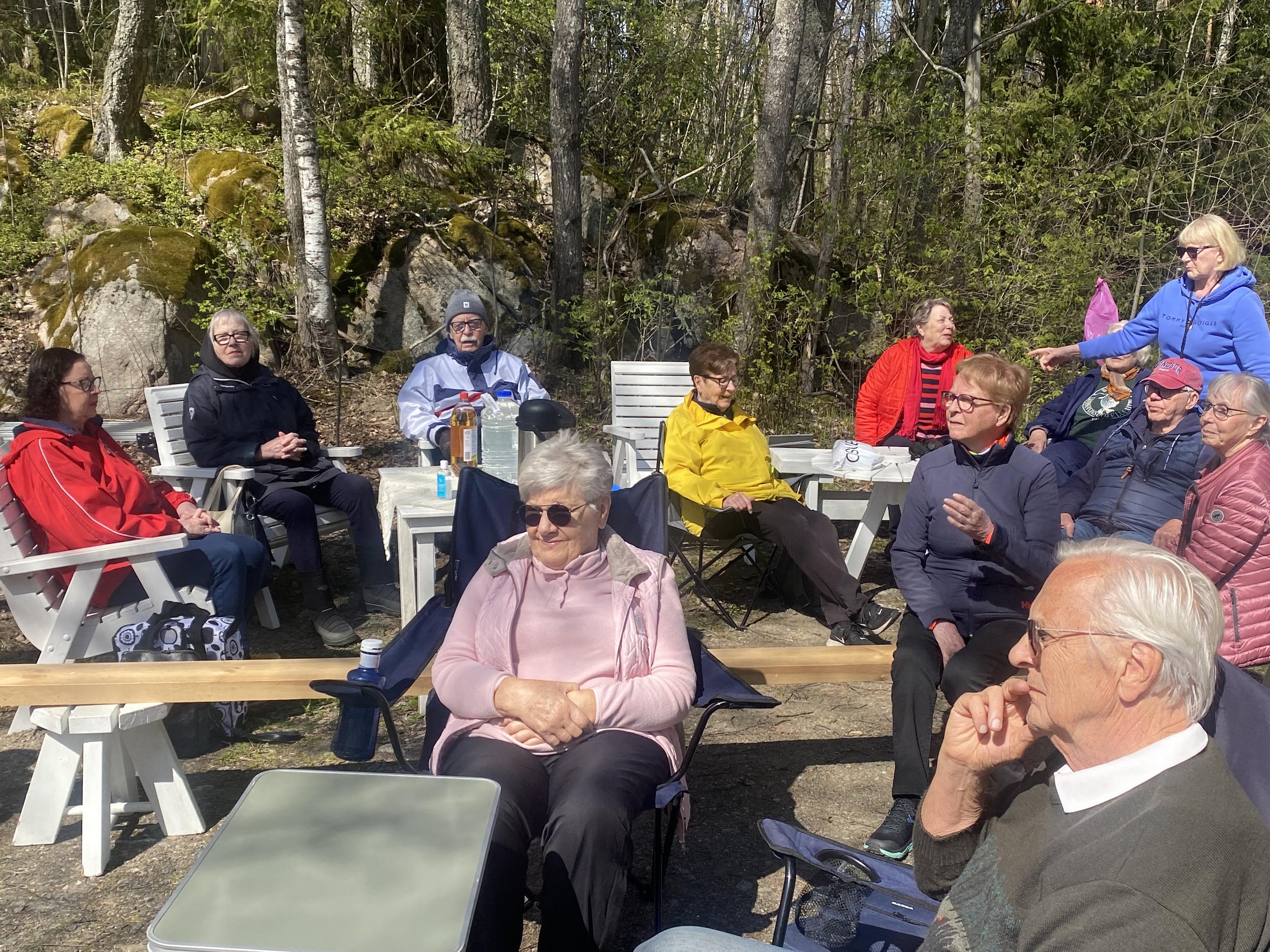 Vuoden mukavinta päivää vietettiin liikunnan parissa Kalkkisten koskella13.5.2025. Mukana oli 24 reipasta senioria. Aloitimme päivän Päijänne-talolla pienellä jumppahetkellä Suvi Eliassonin komennossa. Koskelle saavuttuamme Asikkala oppaiden Geopark opas Iina Ruokolainen kertoi meille paikan historiasta, joka on tosi mielenkiintoinen ja rikas. Nautimme mukavassa seurassa ja säässä eväitämme ja Sakari Tapsan kera "grillasi"meille makkaroita. Isot kiitokset Tuulille, Tapsalle, Sakarille, Eerolle ja Iinalle, meillä oli oikeasti kiva päivä.